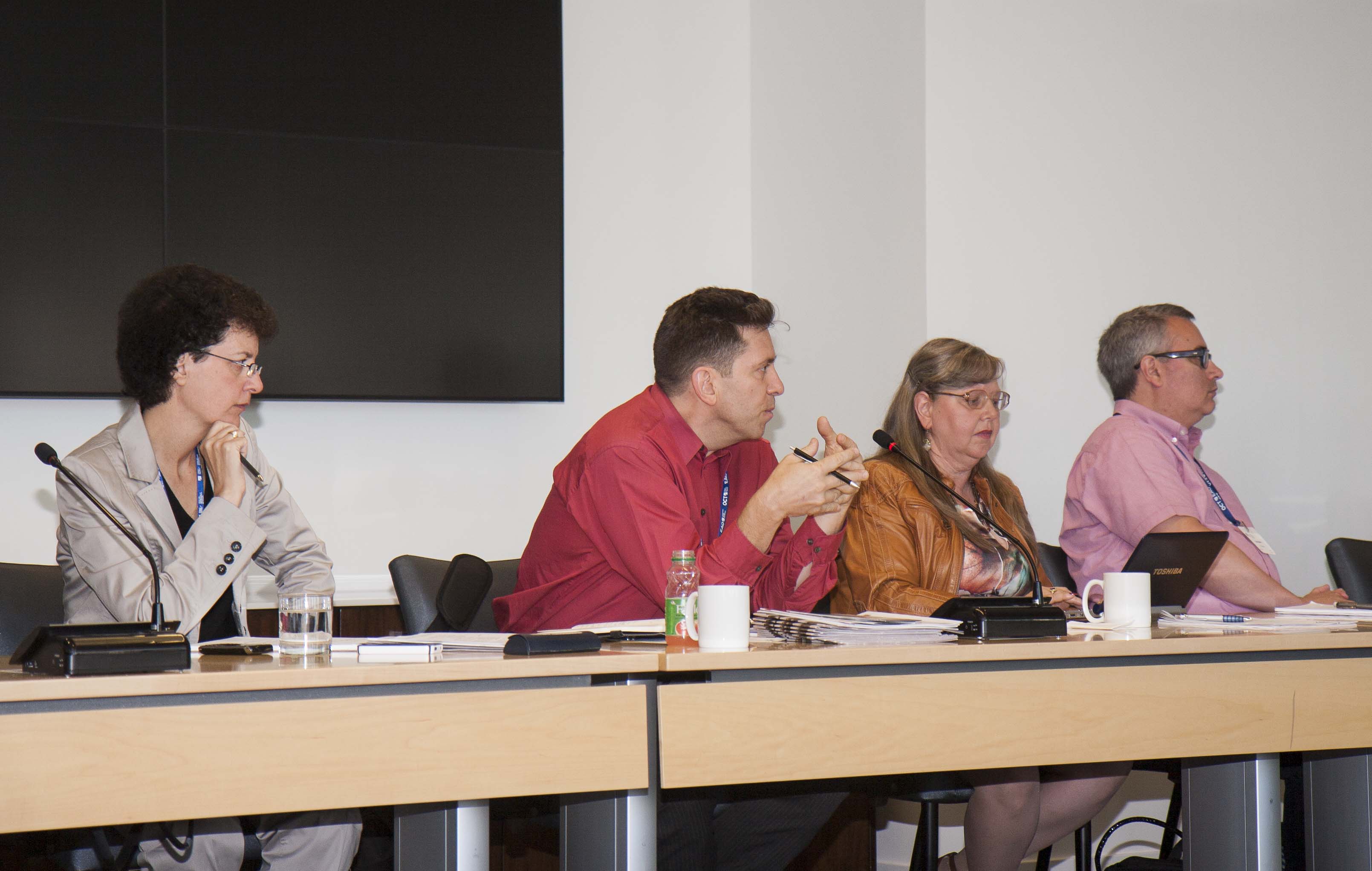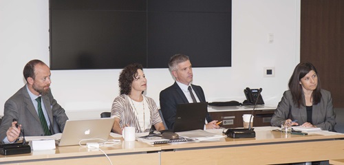 College officials David Tallo, Michelle Longlade, Michael Salvatori, and Liz Papadopoulos listen attentively to the Minister.